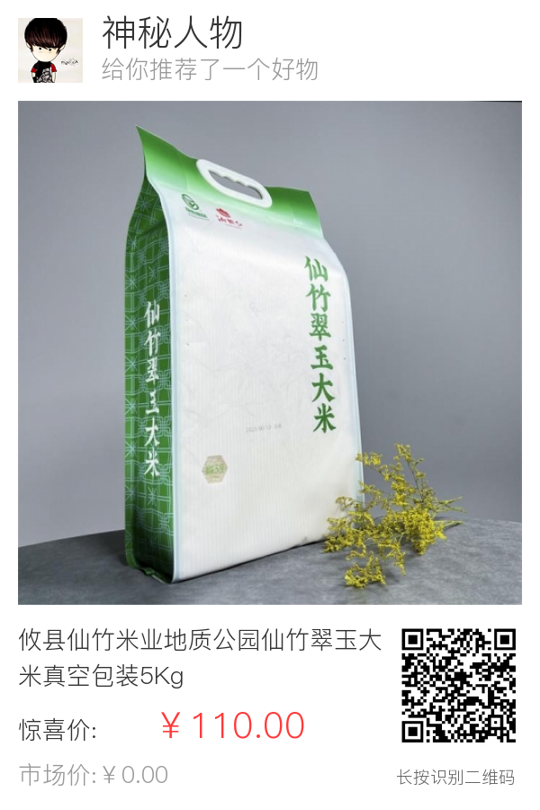 攸县仙竹米业地质公园仙竹翠玉大米真空包装5Kg